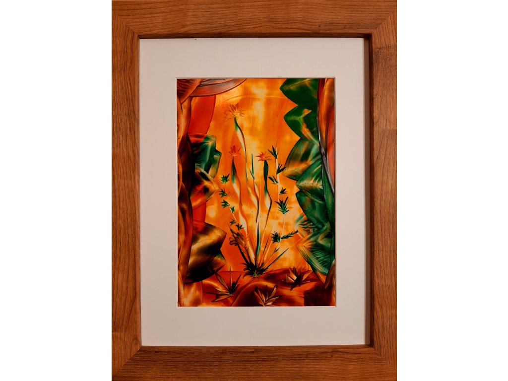 Obraz malovaný horkým voskem enkaustickou technikou formátu A4. Rozměr obrazu i s rámem 30x40 cm.